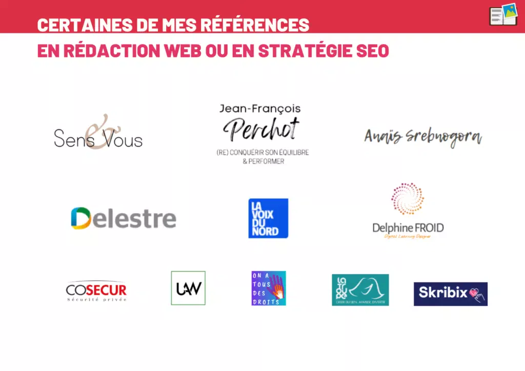 Depuis 2022, je suis consultante en SEO éditorial et je conseille les indépendants et TPE en matière de stratégie de communication et de contenus en ligne. J’aide les entreprises à avoir des contenus de qualité, qui se référencent sur Google (mais aussi sur LinkedIn).